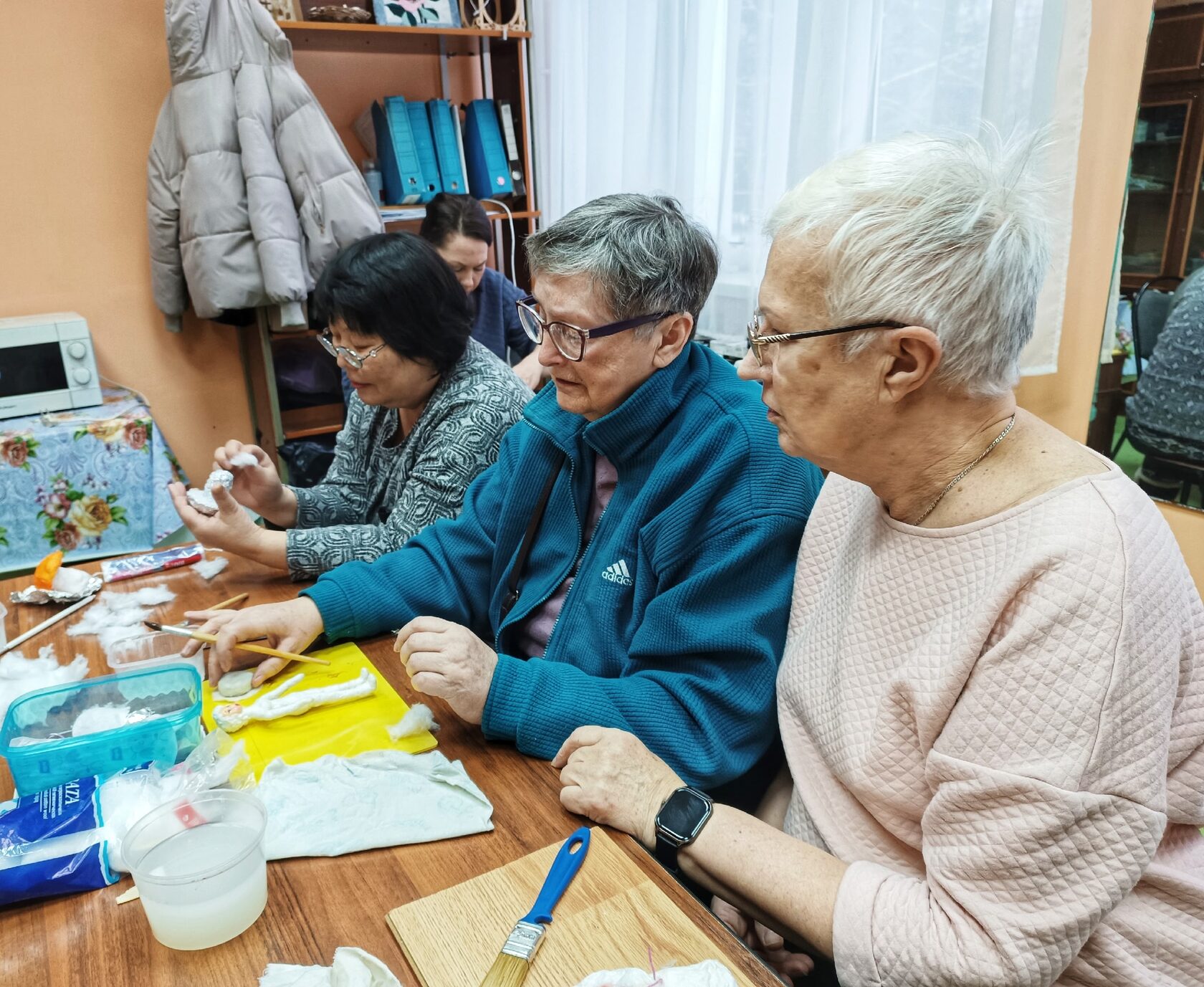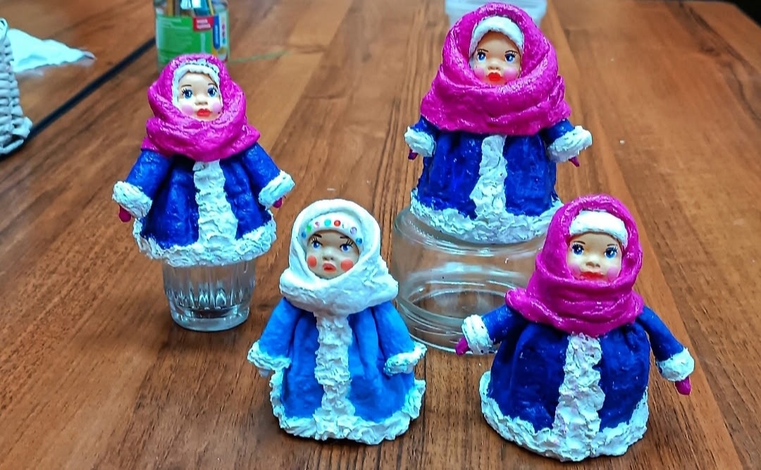 Именно в этом направлении раскрывают свой талант участники клуба «Фантазия» региональной программы «Активное долголетие». Недавно прошли мастер-классы, посвящённые новогодним праздникам. Участники изготовили фигурки Деда Мороза для установки под ёлку, милые куклы и очаровательных девочек, которые станут прекрасным украшением дома или оригинальным подарком к празднику.