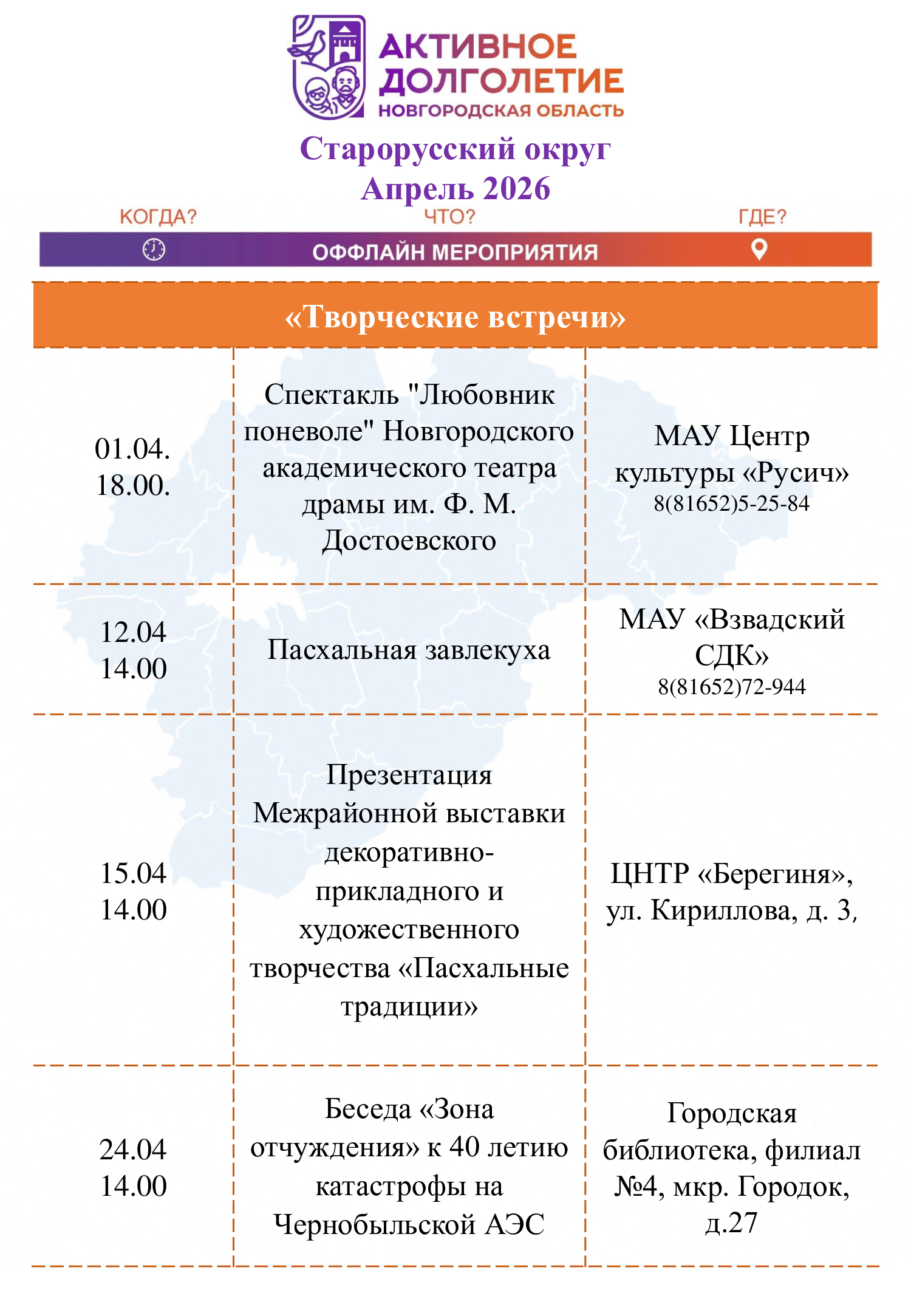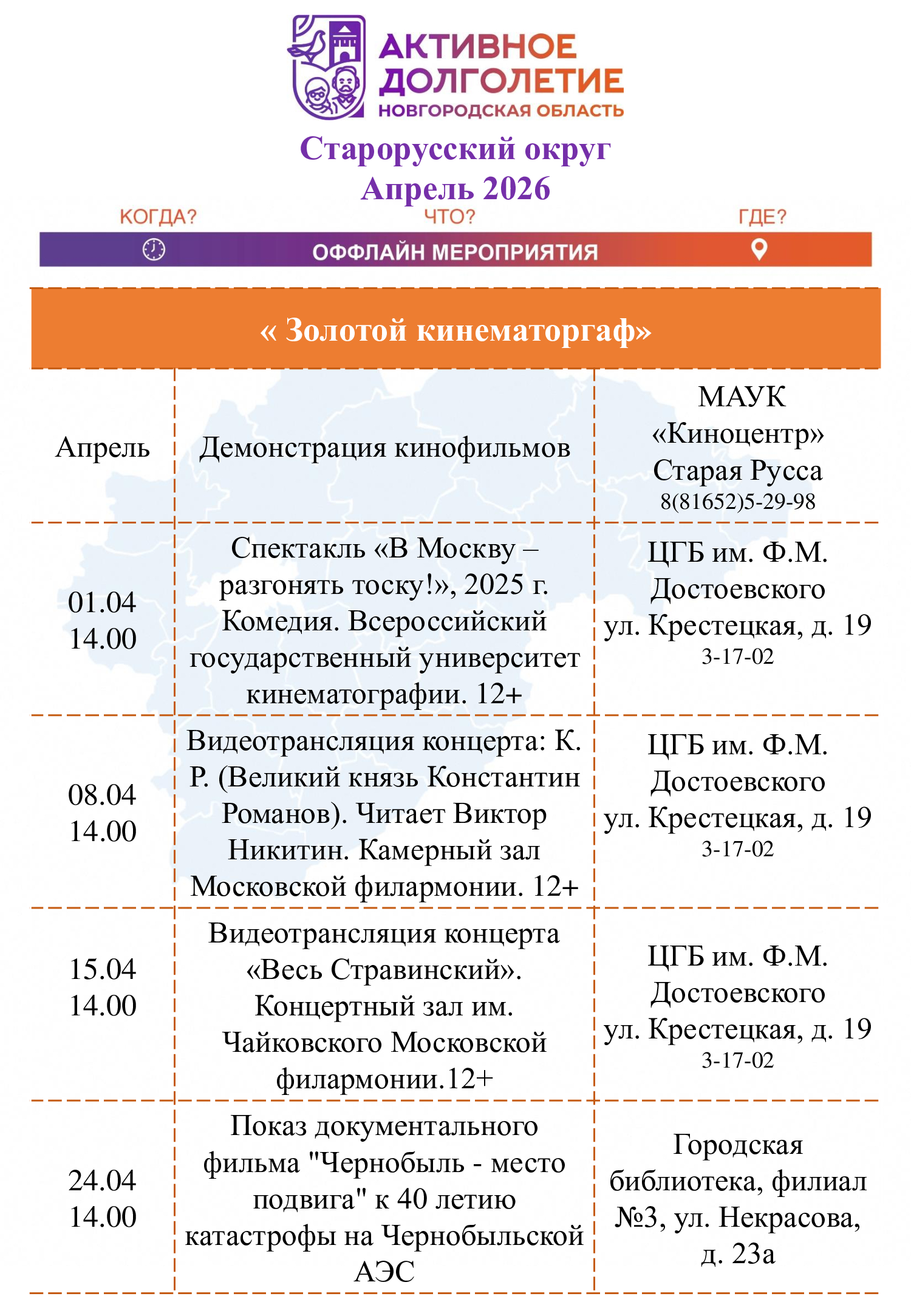 Афиша мероприятий на апрель