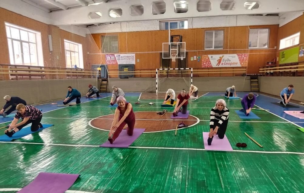 Участники клуба активно включились в занятие. В программу вошли упражнения на укрепление мышц, улучшение координации, гибкости и равновесия.